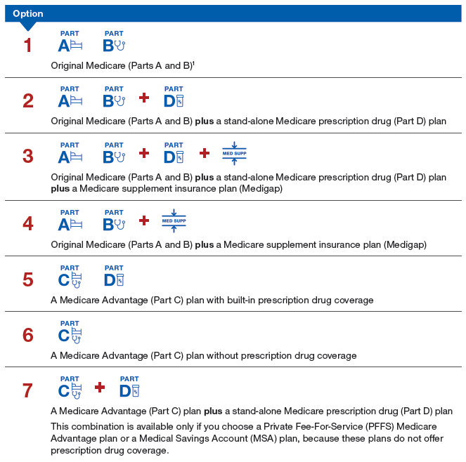 Below is a very simplified explanation of your Medicare options. There are many caveats in explaining Medicare options but we will forgo those for this explanation.